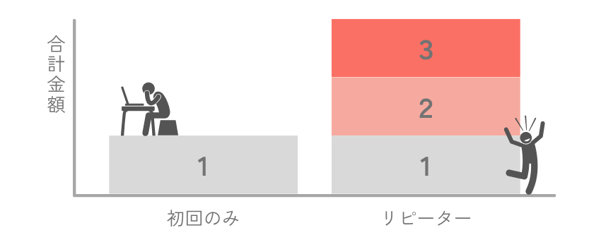 一度購入してくれた顧客が再訪してくれない、あるいは一度の購入金額が低い状態が続いている場合、売上を安定的に伸ばすことは難しくなります。