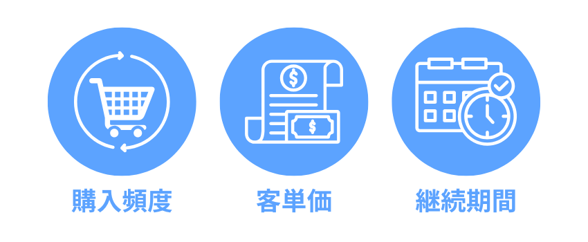 LTVは「購入頻度」「客単価」「継続期間」の3要素で構成されています。これらを個別に改善することで、総合的なLTV向上を実現できます。それぞれの要素について、具体的な施策を見ていきましょう。