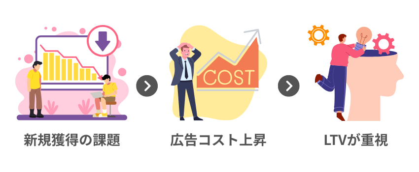 EC事業を取り巻く環境は年々厳しさを増しており、新規顧客の獲得だけでは持続的な成長が難しくなっています。ここでは、LTV改善が注目される背景とその重要性について解説します。